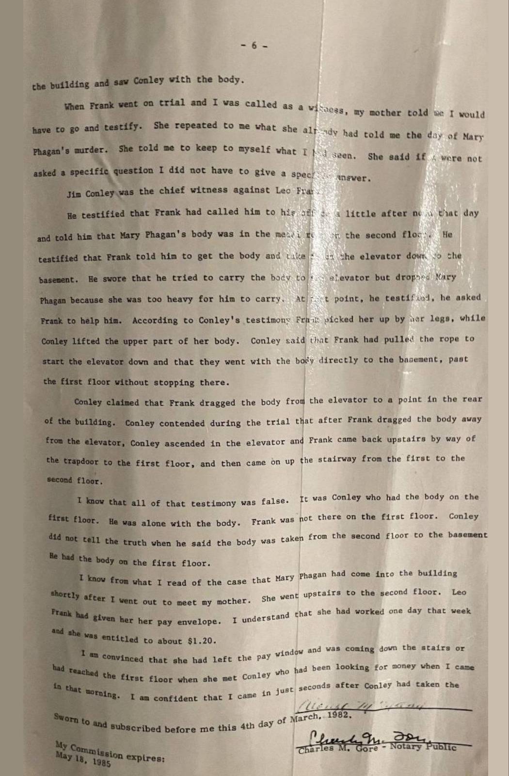 Sixth Page of Alonzo Mann Affidavit, March 4th, 1982, Sullivan County, Tennessee PDF