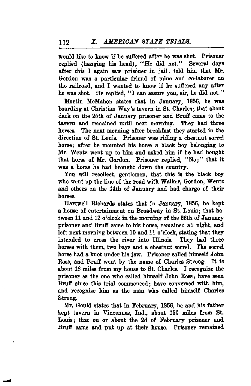 Mr. Gould states that in February 1856, he and his father kept a tavern in Vincennes, Ind., about 150 miles from St. Louis. On or about the 2nd of February, the prisoner and Bruff came and put up at their house. The prisoner remained...