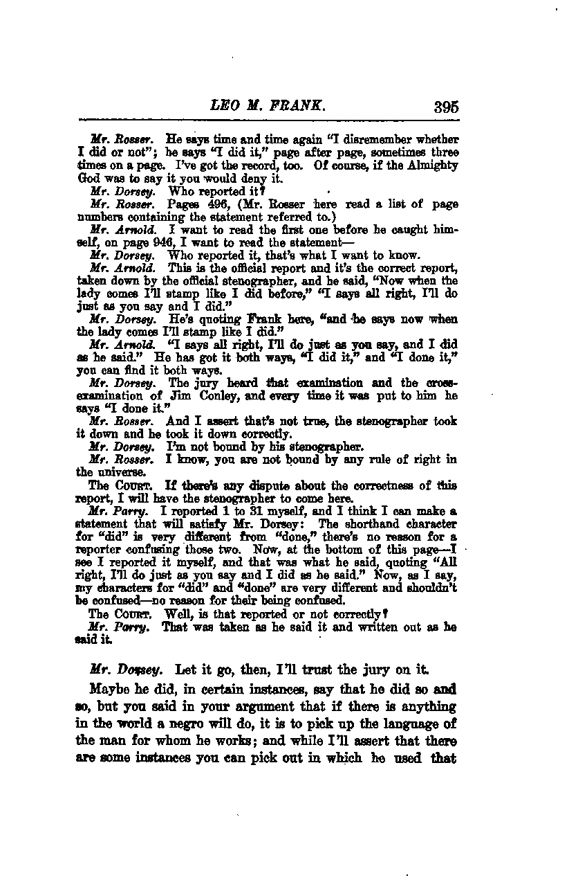 **Mr. Dorsey:** The jury heard that examination and the cross-examination of Jim Conley, and every time it was put to him, he says "I done it."