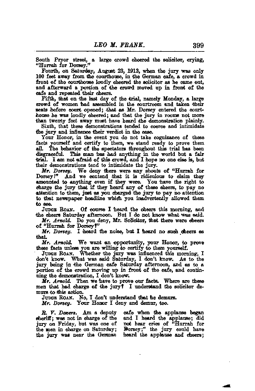 Mr. Arnold: Do you deny, Mr. Solicitor, that there were cheers of "Hurrah for Dorsey?"