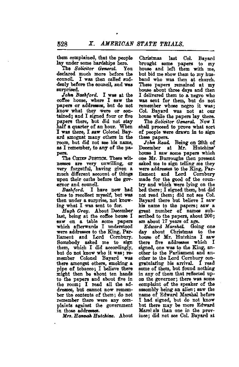 **The Chief Justice:** These witnesses are very unwilling, or very forgetful, having given a much different account of things upon their oaths before the governor and council.