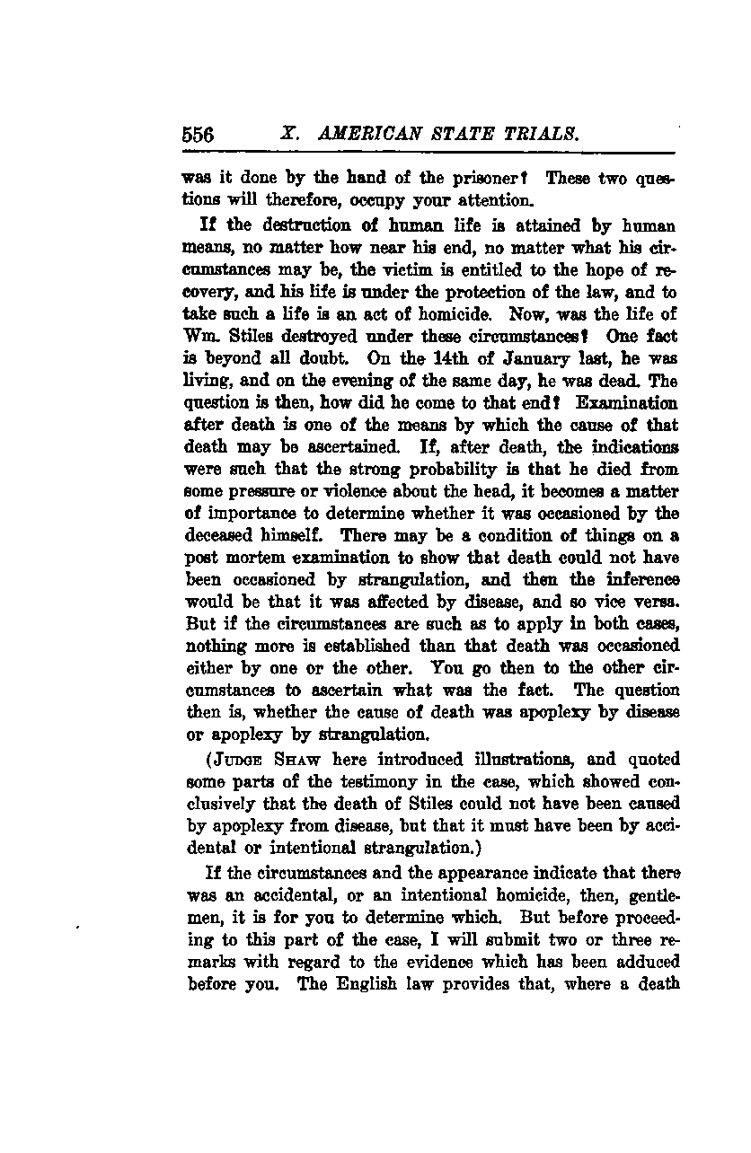 (Justice Shaw here introduced illustrations and quoted some parts of the testimony in the case, which showed conclusively that the death of Stiles could not have been caused by apoplexy from disease, but that it must have been by accidental or intentional strangulation.)