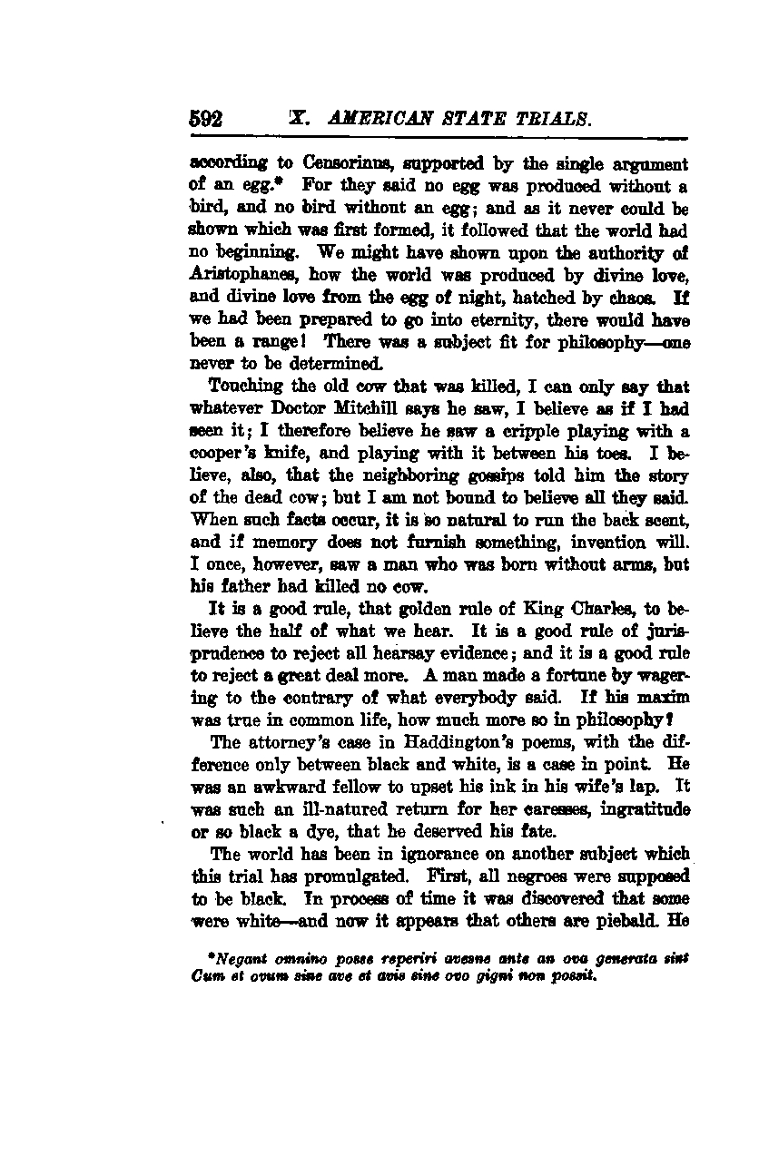 The world has been in ignorance on another subject which this trial has promulgated. First, all negroes were supposed to be black. In process of time, it was discovered that some were white—and now it appears that others are piebald.