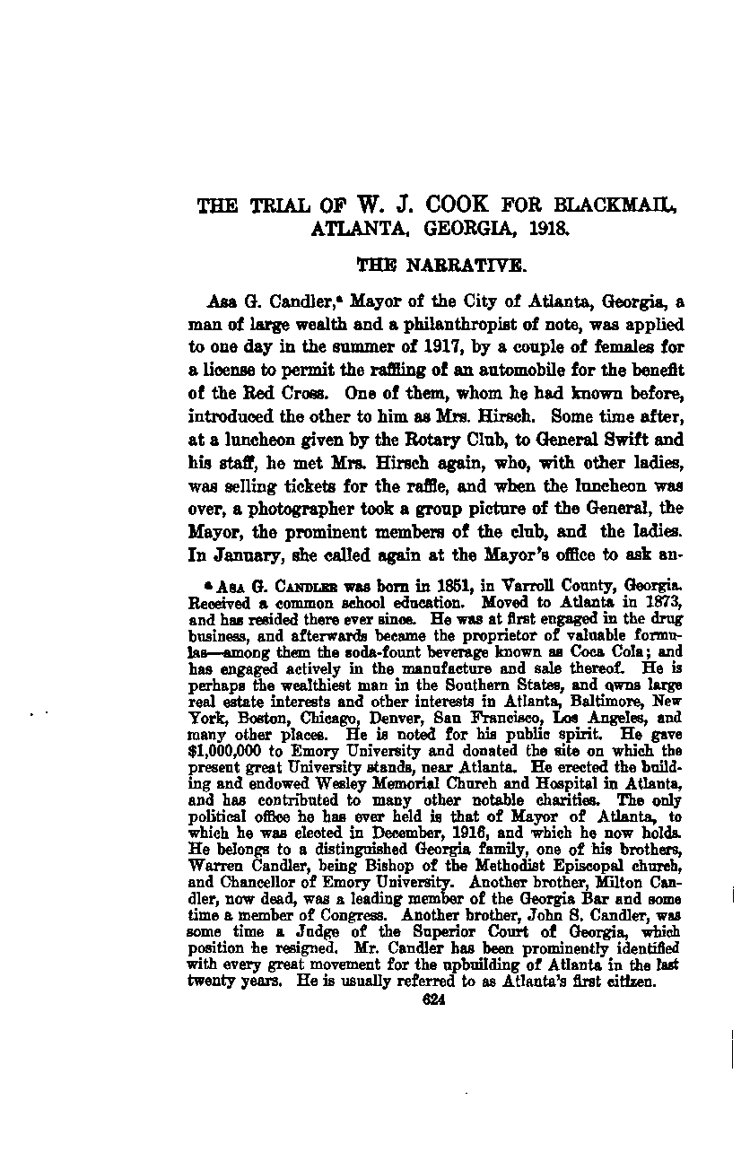 THE TRIAL OF W. J. COOK FOR BLACKMAIL, ATLANTA, GEORGIA, 1918