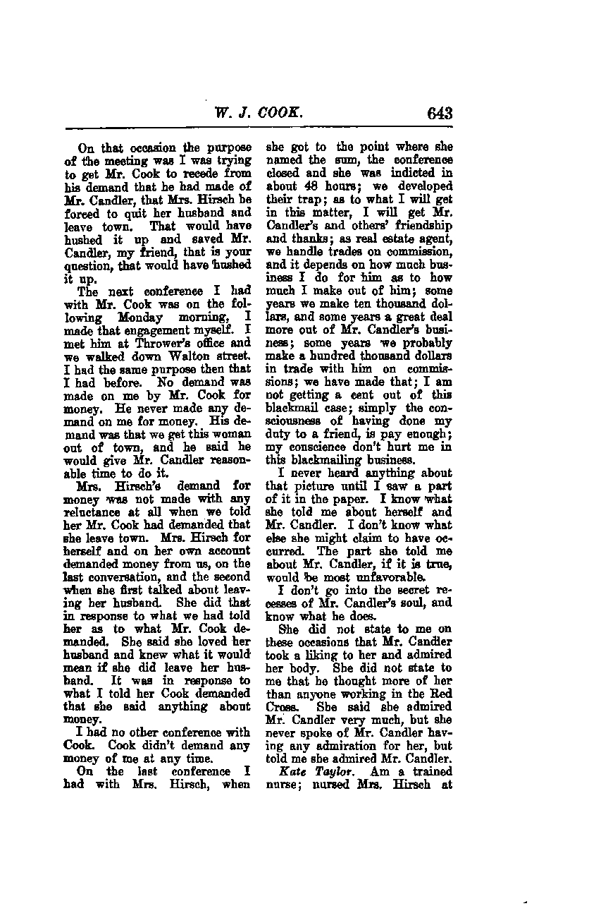 Kate Taylor. I am a trained nurse; I nursed Mrs. Hirsch at...