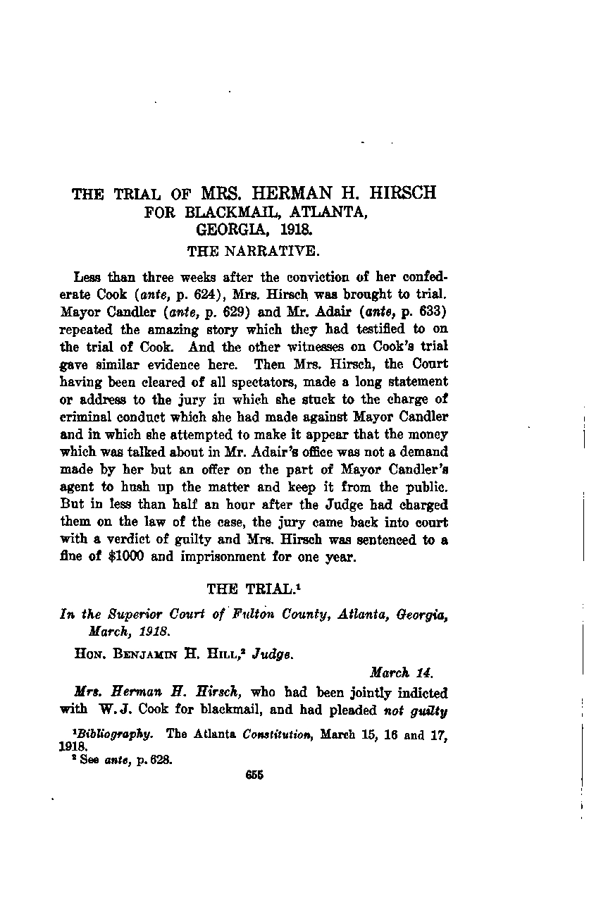 THE TRIAL OF MRS. HERMAN H. HIRSCH FOR BLACKMAIL, ATLANTA, GEORGIA, 1918