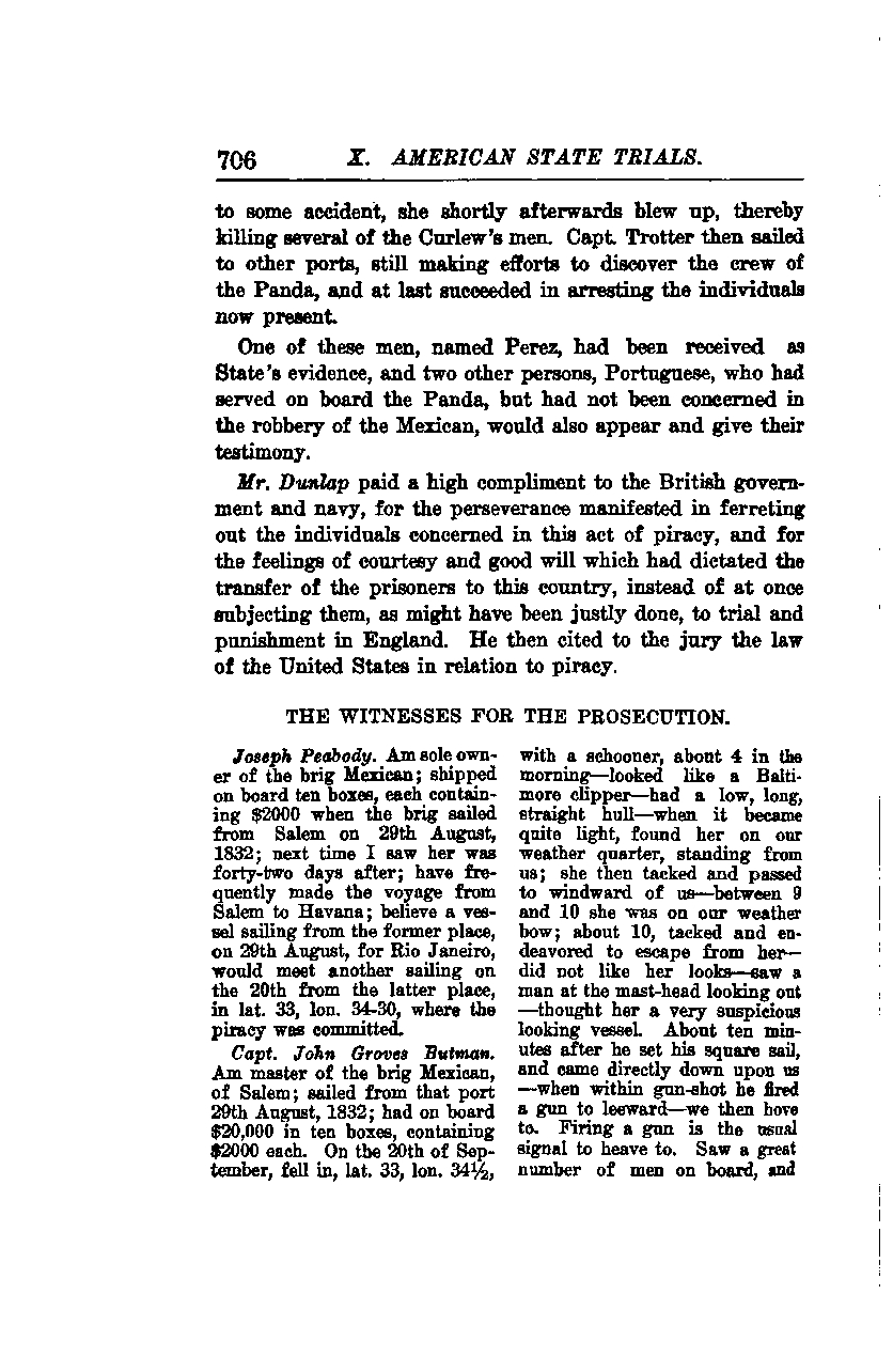 One of these men, named Perez, had been received as State’s evidence. Additionally, two other individuals, Portuguese nationals who had served on board the Panda but had not been involved in the robbery of the Mexican, would also appear to give their testimony.