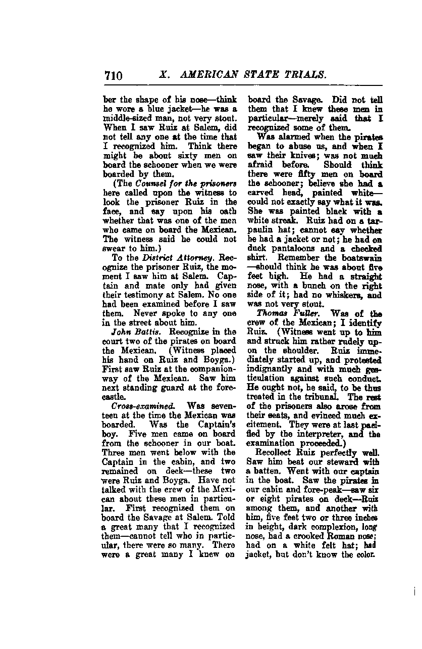 **To the District Attorney:** I recognized the prisoner Ruiz the moment I saw him at Salem. Only the captain and mate had given their testimony at Salem. No one had been examined before I saw them. I never spoke to anyone in the street about him.
