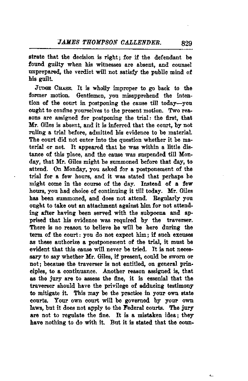 It is not necessary to say whether Mr. Giles, if present, could be sworn or not, because the traverser is not entitled, on general principles, to a continuance. Another reason given is that, as the jury is to assess the fine, it is essential that the traverser should have the privilege of adducing testimony to mitigate it. This may be the practice in your own state courts. Your own court will be governed by your own laws, but it does not apply to the Federal courts. The jury is not to regulate the fine. It is a mistaken idea; they have nothing to do with it. But it is stated that the coun...