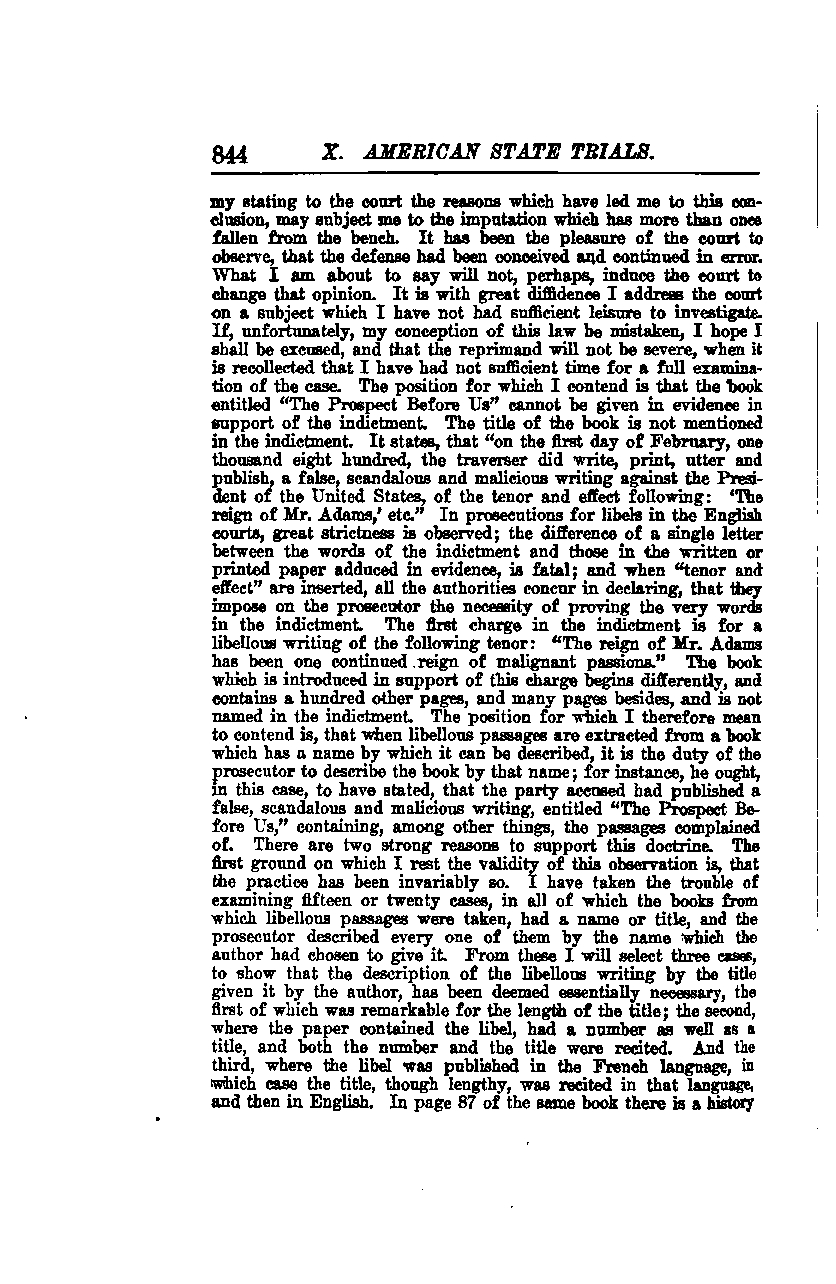 The position for which I therefore mean to contend is that when libelous passages are extracted from a book which has a name by which it can be described, it is the duty of the prosecutor to describe the book by that name. For instance, he ought, in this case, to have stated that the party accused had published a false, scandalous, and malicious writing entitled "The Prospect Before Us," containing, among other things, the passages complained of.