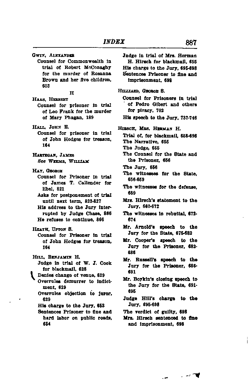 - Judge in the trial of Mrs. Herman H. Hirsch for blackmail, 655.