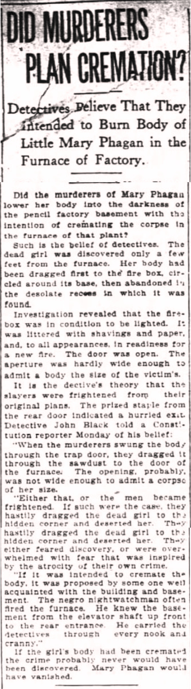 If the girl's body had been cremated the crime probably never would have been discovered. Mary Phagan would have vanished.