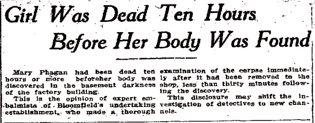 Mary Phagan had been dead ten hours or more before her body was discovered in the basement darkness of the factory building.