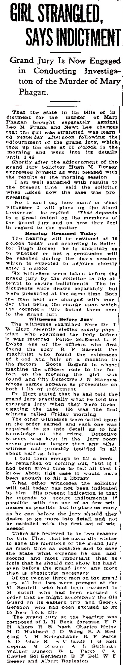 - 0033) Tuesday, 6th May 1913 Probe Phagan Case Grand Jury Urged [Last Updated On: July 12th, 2024] [Originally Added On: November 3rd, 2021]