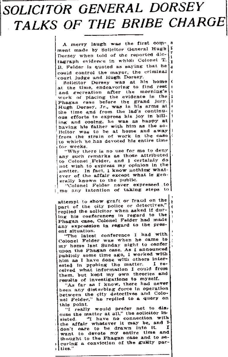 - 0061) Saturday, 24th May 1913 Bribery Charges False Declares Col. Felder; Calls Them Frame-Up [Last Updated On: July 12th, 2024] [Originally Added On: October 6th, 2021]