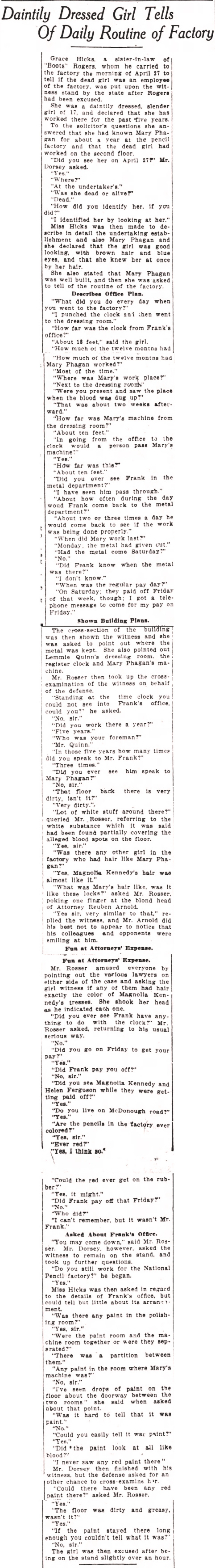 Miss Hicks was then asked in regard to the details of Frank's office, but could tell but little about its arrangement.
