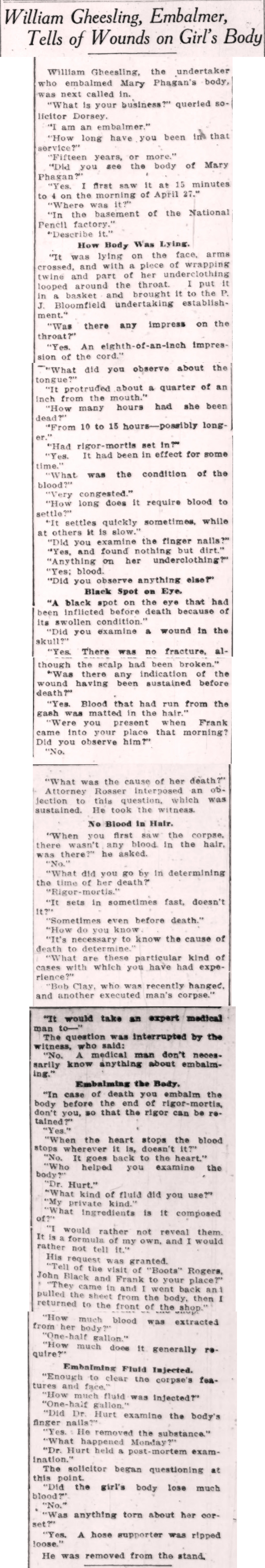 William Gheesling, the undertaker who embalmed Mary Phagan's body, was next called in.