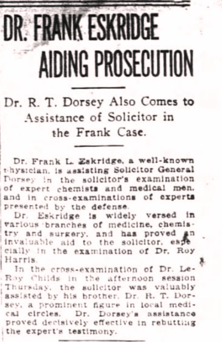 Dr. R. T. Dorsey Also Comes to Assistance of Solicitor in the Frank Case