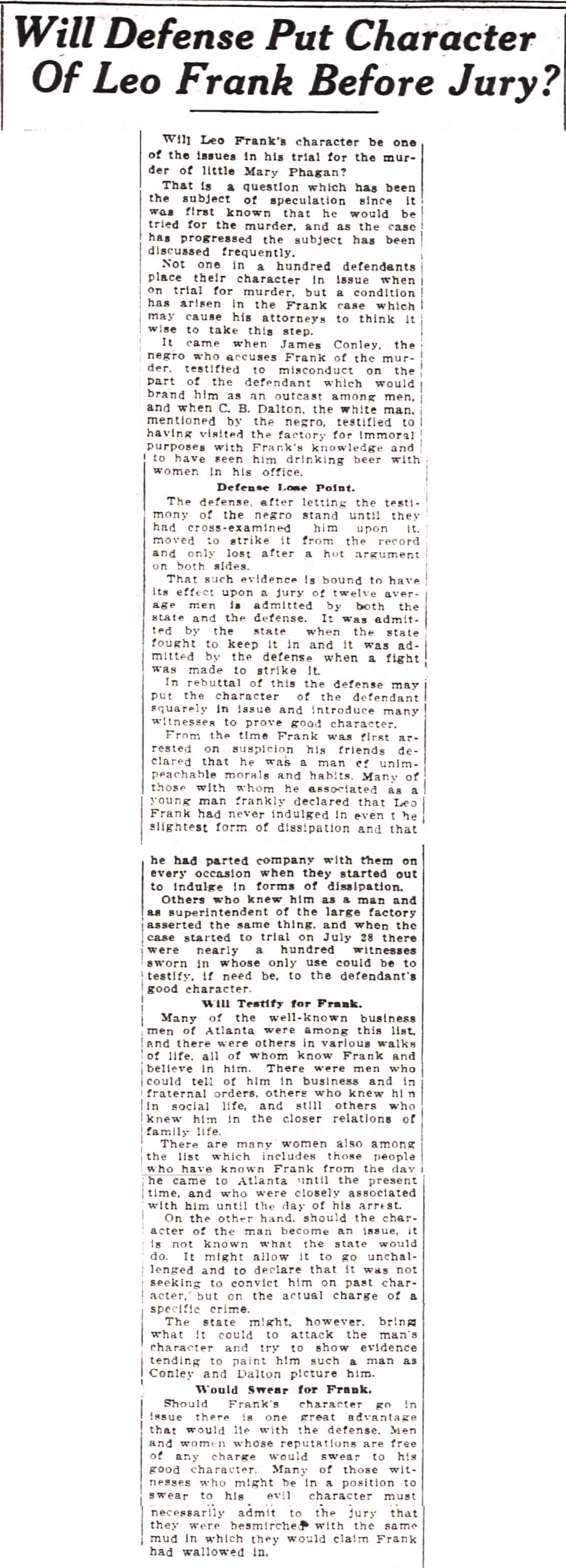 - 0747) Thursday, 3rd June 1915: Frank And Conley Will Not Testify, The Atlanta Constitution [Last Updated On: March 4th, 2026] [Originally Added On: March 2nd, 2026]