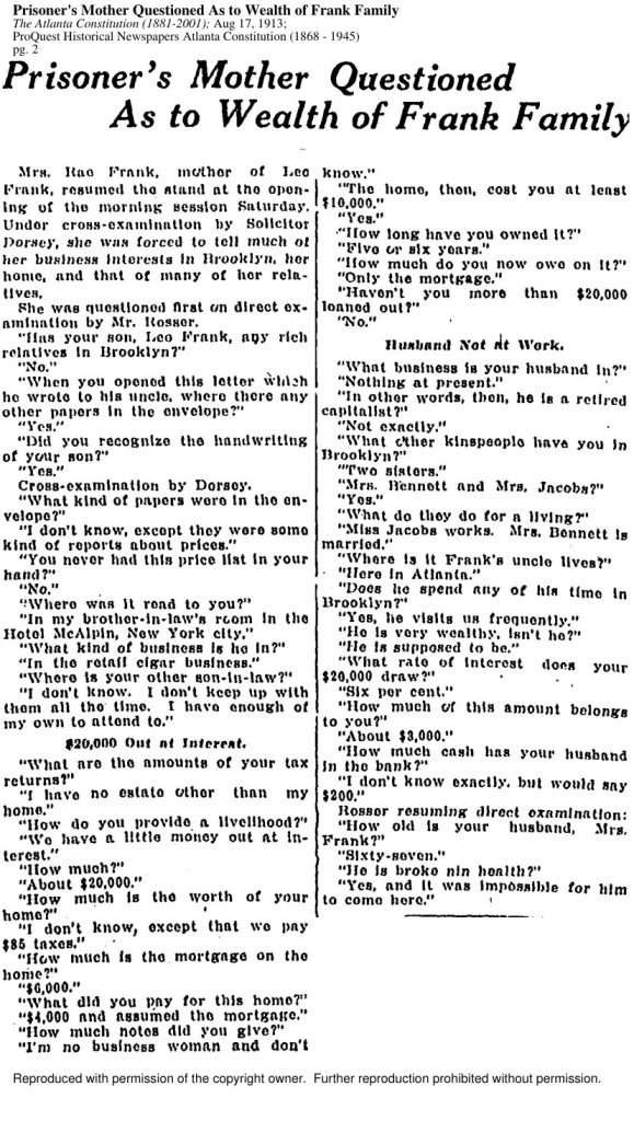 “Has your son, Leo Frank, any rich relatives In Brooklyn?”