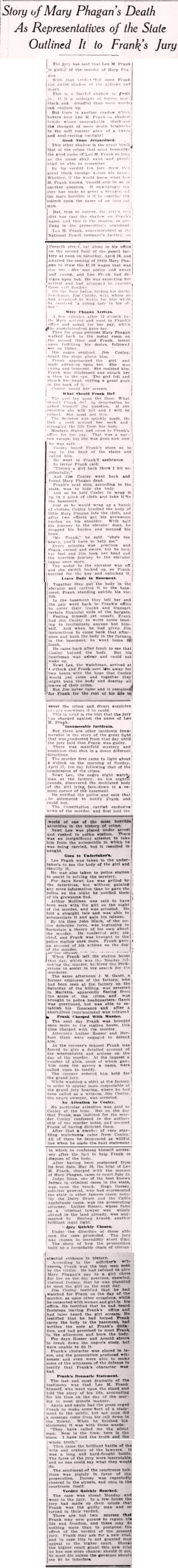The Jury has said that Leo Max Frank Is guilty of the murder of Mary Anne Phagan.