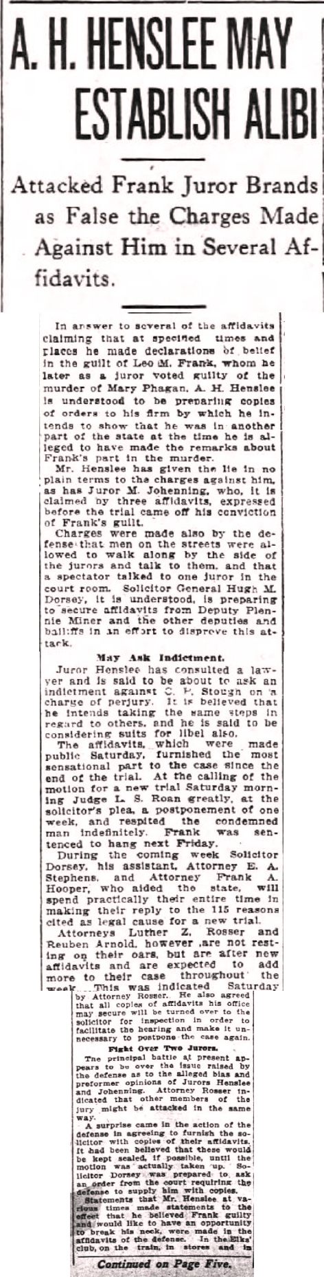 murder of Mary Phagan. A. H. Henslee is understood to be