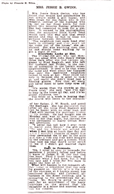 Henry Gwinn three days after she had become engaged to Fred