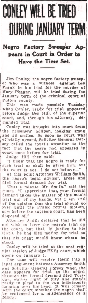 - 0652) Monday, 30th November 1914: No Delay Expected In Leo Frank Case, The Atlanta Constitution [Last Updated On: July 9th, 2025] [Originally Added On: July 8th, 2025]