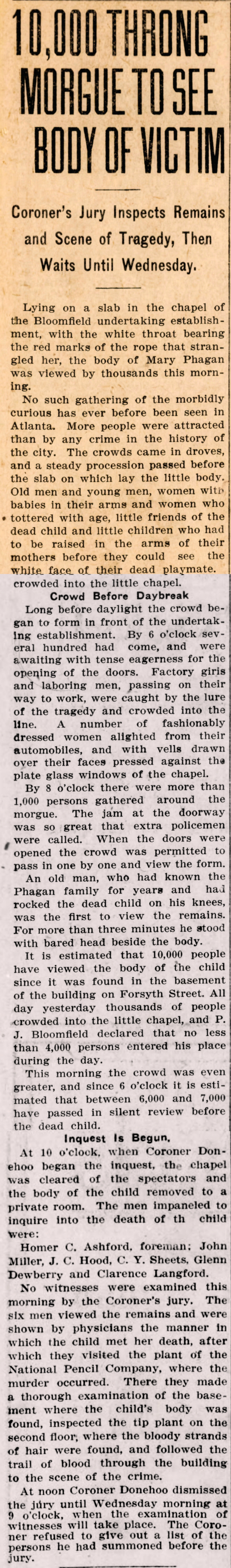 - 0047) Wednesday, 30th April 1913 Great Crowd at Phagan Inquest [Last Updated On: September 16th, 2023] [Originally Added On: January 3rd, 2023]