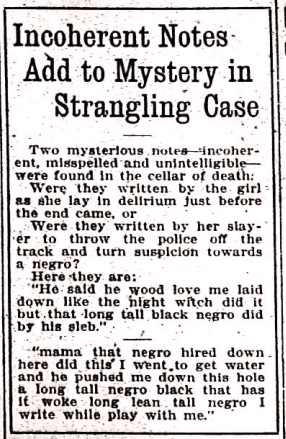 Were they written by her slayer to throw the police off the track and turn suspicion towards a negro?