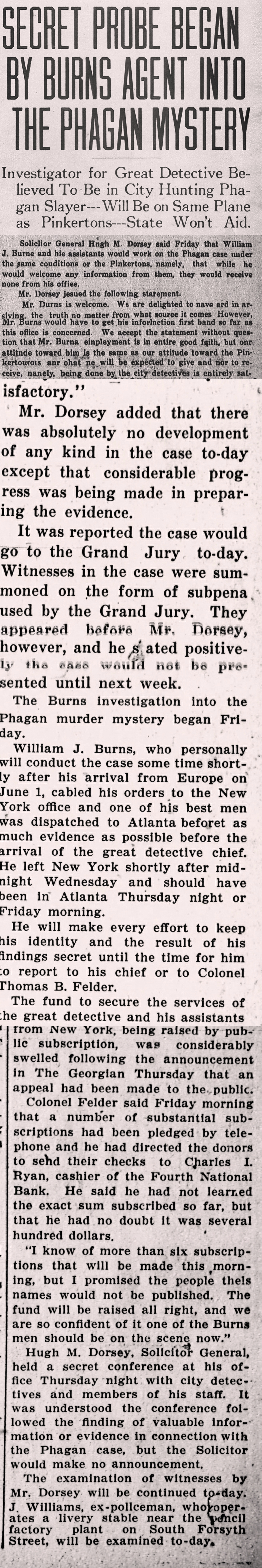 - 0068) Friday, 2nd May 1913 Dorsey Puts Own Sleuths Onto Phagan Slaying Case [Last Updated On: September 16th, 2023] [Originally Added On: December 7th, 2022]