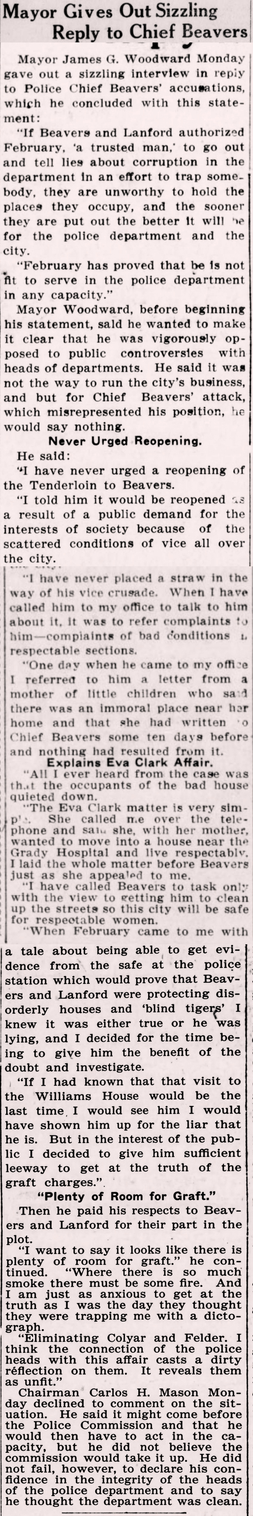 "I have called Beavers to task only with the view to getting him to clean up the streets so this city will be safe for respectable women.