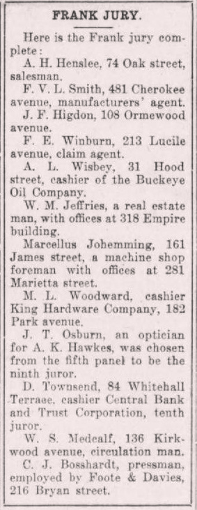 - 0476) Friday, 3rd October 1913: Frank Trial Juror Denies Charge Of Bias, The Atlanta Georgian [Last Updated On: October 21st, 2024] [Originally Added On: August 9th, 2024]