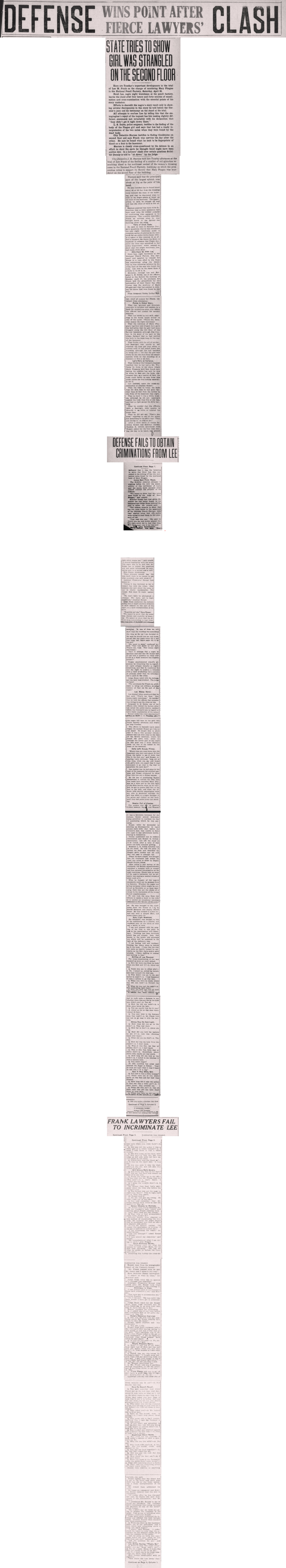 "Every time you went down into the basement you went only about 25 feet from the ladder to see if there was fire in the dust pan," said Rosser, repeating Lee's testimony, "and yet at this time, when you say you found the girl's body, you assert that it was necessary to go clear to the rear to ascertain the same fact?"