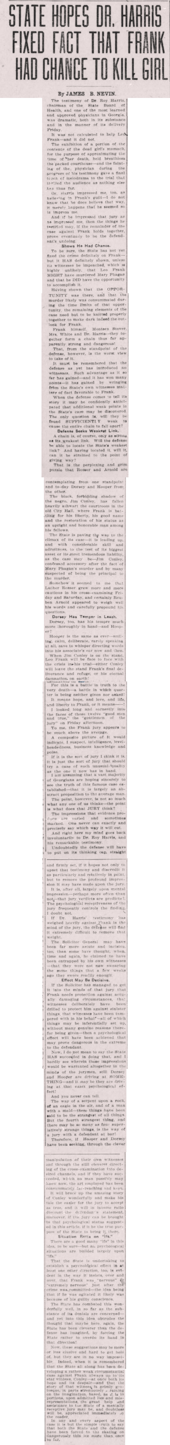 Dr. Harris impressed me, too, as believing in Frank's guilt—I do not know that he does believe that way, it merely happens that he seemed so to impress me.