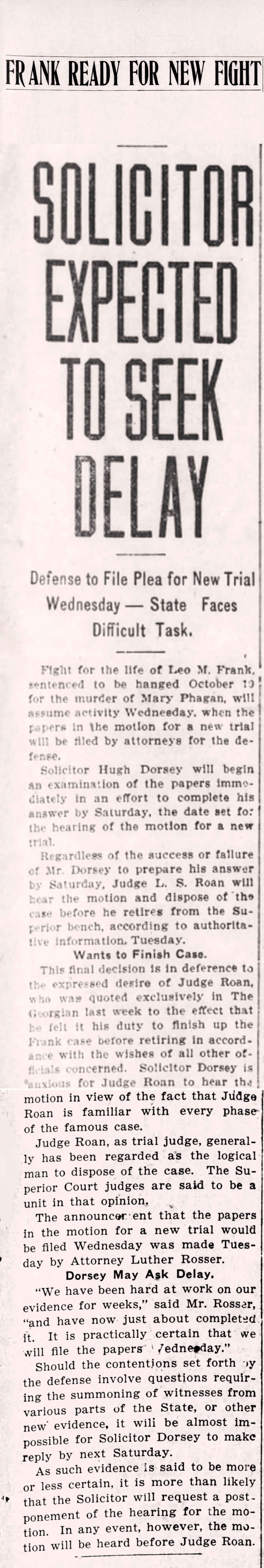 - 0471) Friday, 26th September 1913 Judge Roan To Hear Arguments Asking Retrial For Frank [Last Updated On: September 6th, 2024] [Originally Added On: February 29th, 2024]