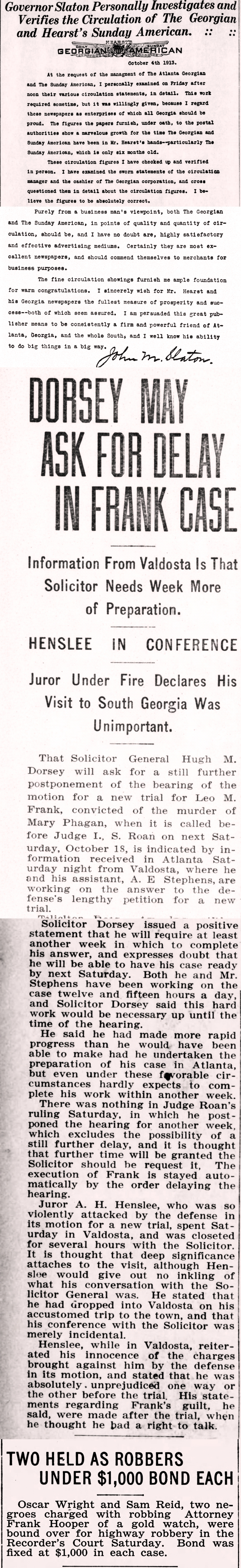 - 0477) Friday, 3rd October 1913: Frank Trial Juror Denies Charge Of Bias, The Atlanta Georgian [Last Updated On: October 21st, 2024] [Originally Added On: August 9th, 2024]
