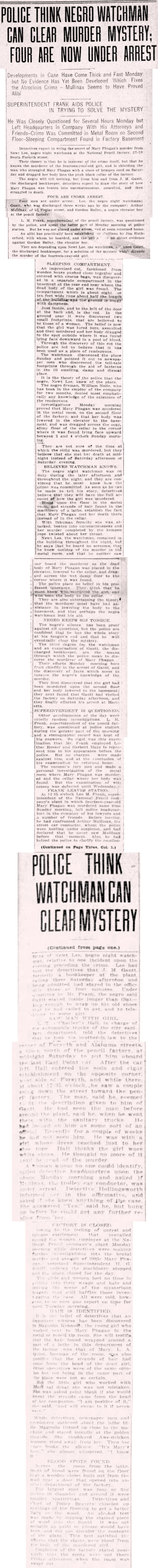 - 0019) Wednesday, 30th April 1913 Negro Watchman Tells Story of Finding Girl’s Body and Questions Fail to Shake Him [Last Updated On: January 29th, 2021] [Originally Added On: January 29th, 2021]