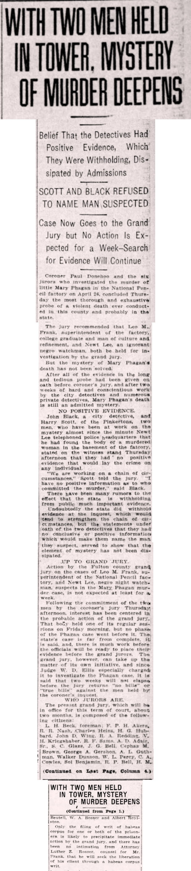 - 0030) Monday, 5th May 1913 Coroner’s Inquest Resumed 2:30 p. m.; Frank Will Testify [Last Updated On: January 16th, 2021] [Originally Added On: January 16th, 2021]