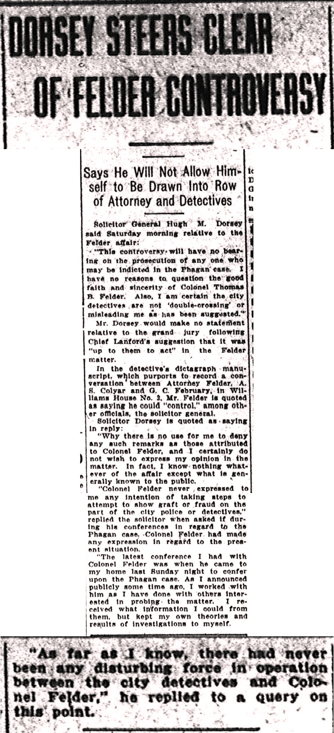 Solicitor General Hugh M. Dorsey said Saturday morning relative to the Felder affair: