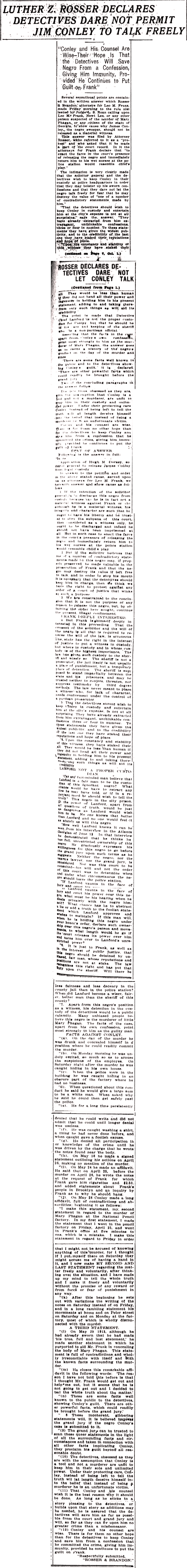 "Conley and His Counsel Are Wise—Their Hope Is That the Detectives Will Save Negro From a Confession, Giving Him Immunity, Provided He Continues to Put Guilt on Frank"