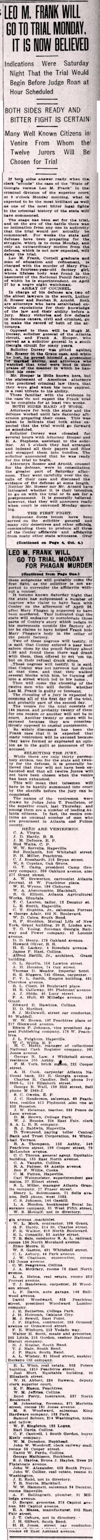 - 0597) Sunday, 21st February 1915: Frank Jurors Not Swayed By Hostile Crowd, Says State, The Atlanta Journal [Last Updated On: January 13th, 2026] [Originally Added On: January 9th, 2026]