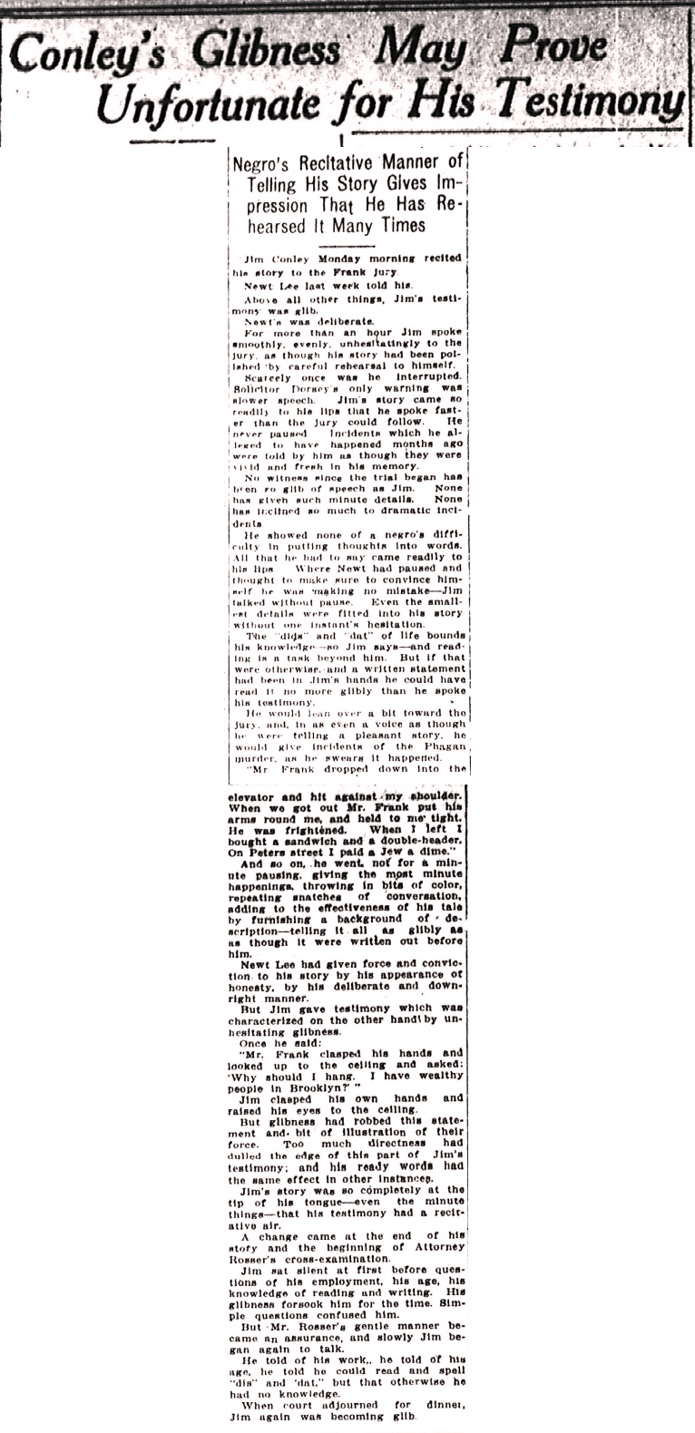 Jim Conley Monday morning recited his story to the Frank jury.