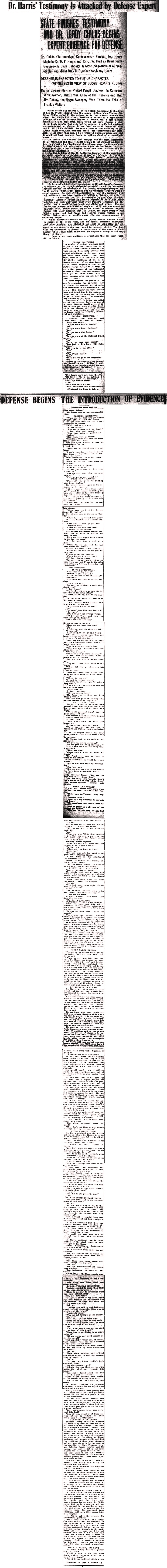 STATE FINISHES TESTIMONY AND DR. LEROY CHILDS BEGINS EXPERT EVIDENCE FOR DEFENSE