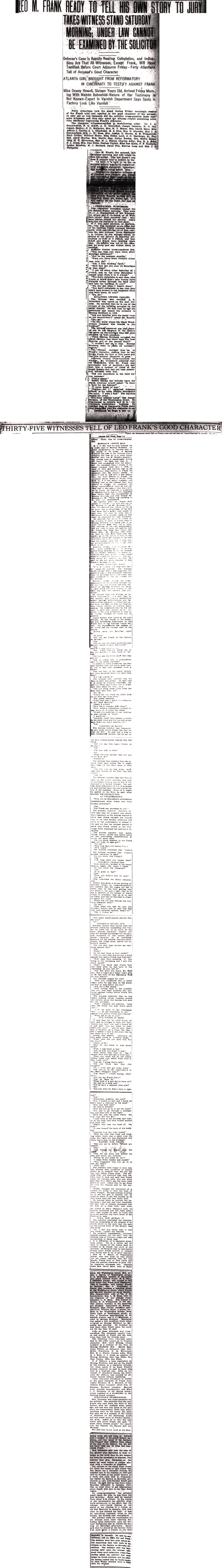 THIRTY-FIVE WITNESSES TELL OF LEO FRANK'S GOOD CHARACTER