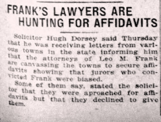 Thursday, 11th September 1913: Frank’s Lawyers Are Hunting For Affidavits, The Atlanta Journal PDF