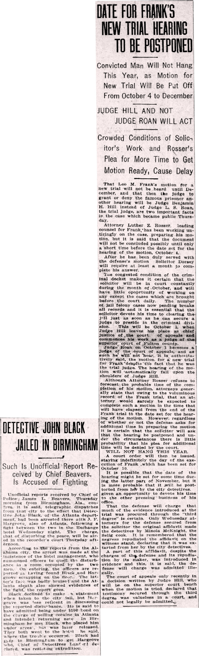 - 0551) Thursday, 3rd December 1914: Leo Frank Will Not Be Resentenced This Week, The Atlanta Journal [Last Updated On: October 24th, 2025] [Originally Added On: October 17th, 2025]