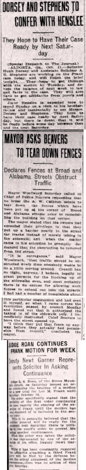 Solicitor Hugh Dorsey and Assistant Solicitor A. E. Stephens are working on the Frank case today, and will finish the brief tonight.