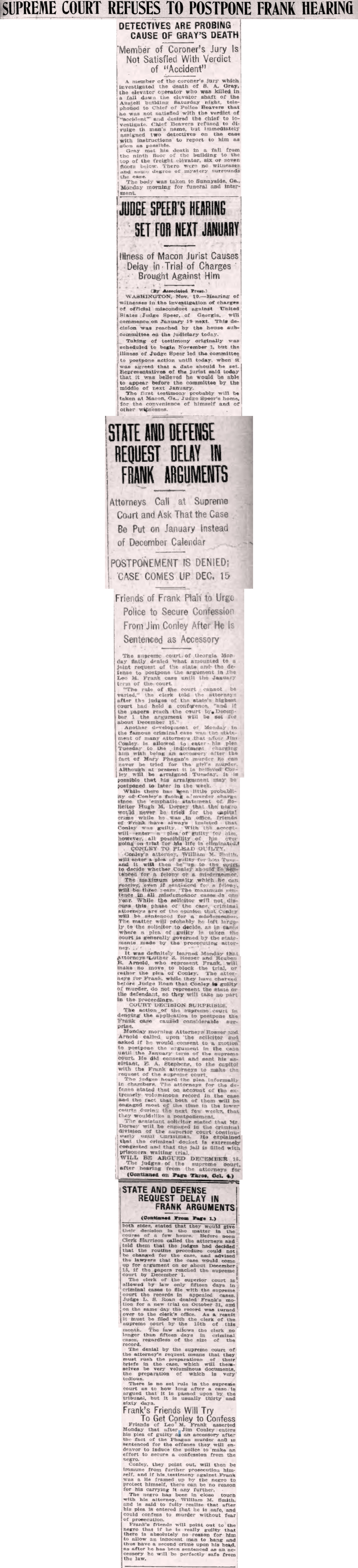 - 0551) Thursday, 3rd December 1914: Leo Frank Will Not Be Resentenced This Week, The Atlanta Journal [Last Updated On: October 24th, 2025] [Originally Added On: October 17th, 2025]