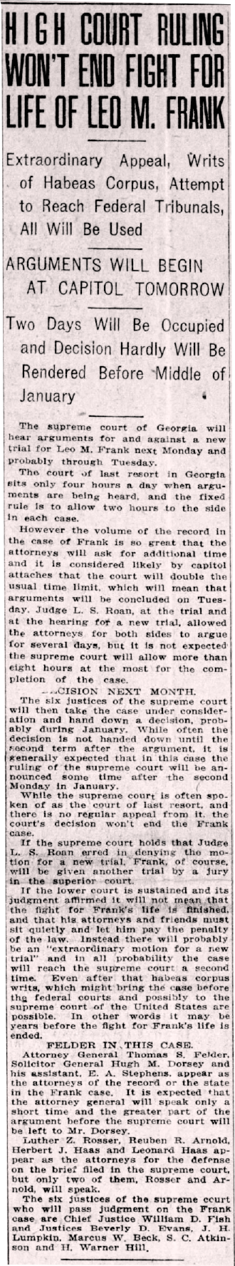 Sunday, 14th December 1913: High Court Ruling Won’t End Fight For Life Of Leo M. Frank, The Atlanta Journal PDF